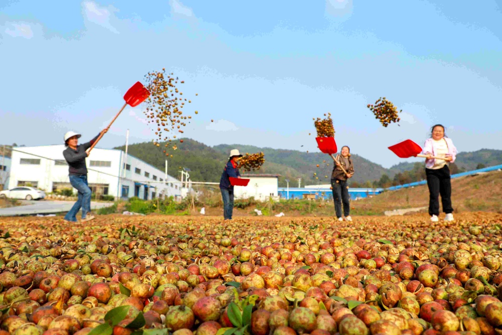 初冬時節(jié),貴州省黔東南苗族侗族自治州從江縣種植的油茶果迎來全面收獲期,村民們搶抓晴好天氣晾曬油茶果,鄉村呈現一派繁忙景象。11月12日,貴州省從江縣丙梅街道居民在晾曬油茶果(無人機照片)。目前,該縣油茶種植面積累計達17.16萬畝,掛果面積8.23萬畝,今年預計產茶籽產量約8200噸,產值約1.2億元。